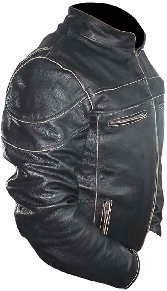 Classyak Men's Fashion Real Leather Vintage Style Biker Jacket