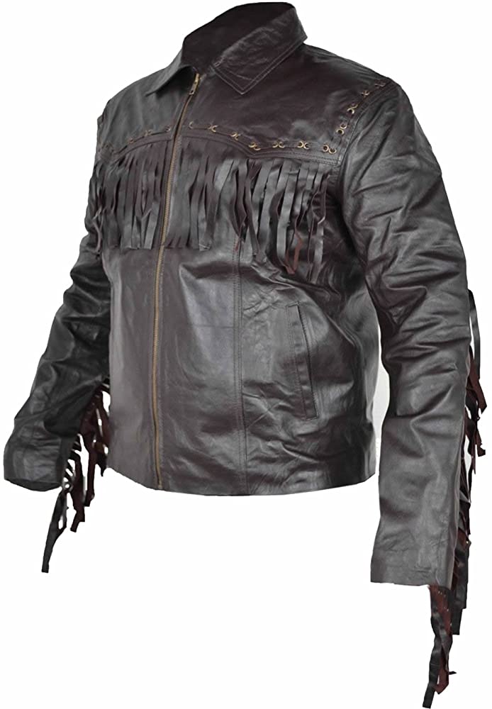 Classyak Men's Western Genuine Leather Fringed Biker Racer Jacket