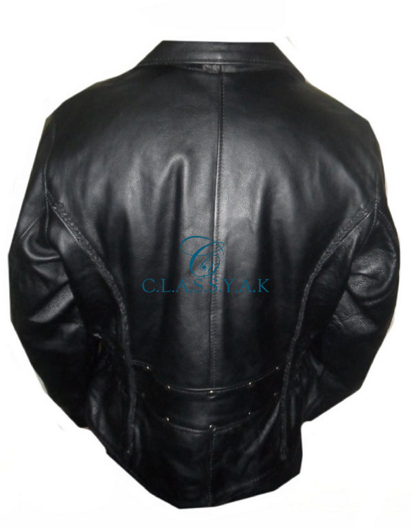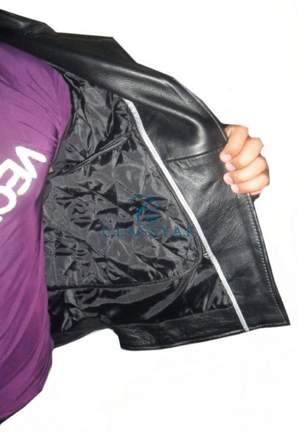 Motorcycle Genuine Leather Jacket Men Biker - Naked Cowhide